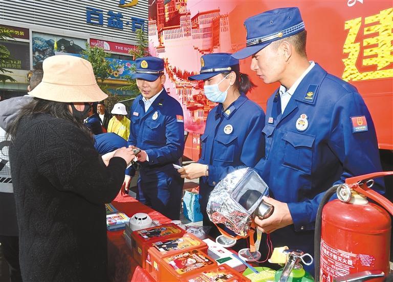 12日上午,自治區(qū)、拉薩市減災委成員單位在拉薩市宇拓路開展“5·12”防災減災日宣傳活動。