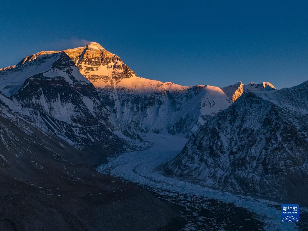 這是5月9日日落時(shí)分拍攝的珠穆朗瑪峰。新華社記者 孫非 攝