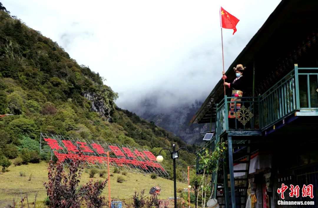 西藏邊陲村落玉麥掛國旗迎國慶。扎西白瑪 攝