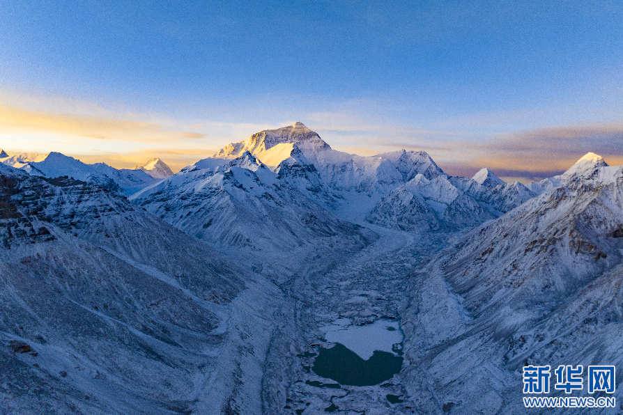 日落時分拍攝的珠穆朗瑪峰。新華網(wǎng) 旦增努布 攝