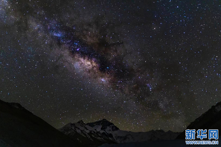 珠穆朗瑪峰上空的銀河。新華網(wǎng) 旦增努布 攝