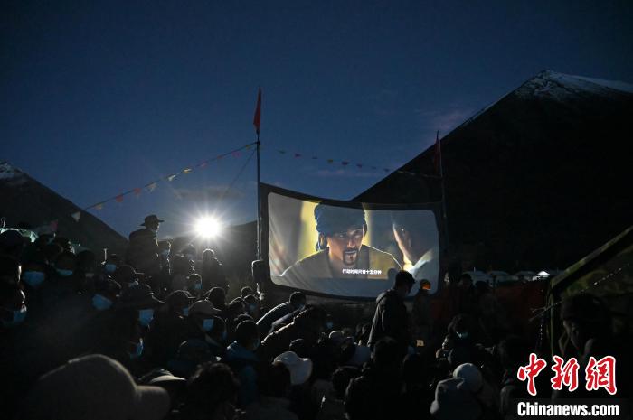 晚上9時(shí)許,山谷沉入暮色,吃過(guò)晚飯,電影放映員見(jiàn)參開(kāi)啟設(shè)備放映了藏語(yǔ)版《湄公河行動(dòng)》。前來(lái)觀看電影的村民席地而坐,不似都市電影院,在這沒(méi)有影院標(biāo)配座椅、爆米花,卻有著星空下的超級(jí)觀感體驗(yàn)。