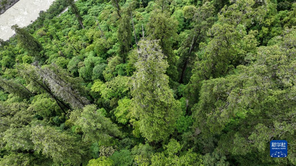 6月15日從空中俯瞰亞洲第一高樹(無人機(jī)照片)。新華社記者 晉美多吉 攝
