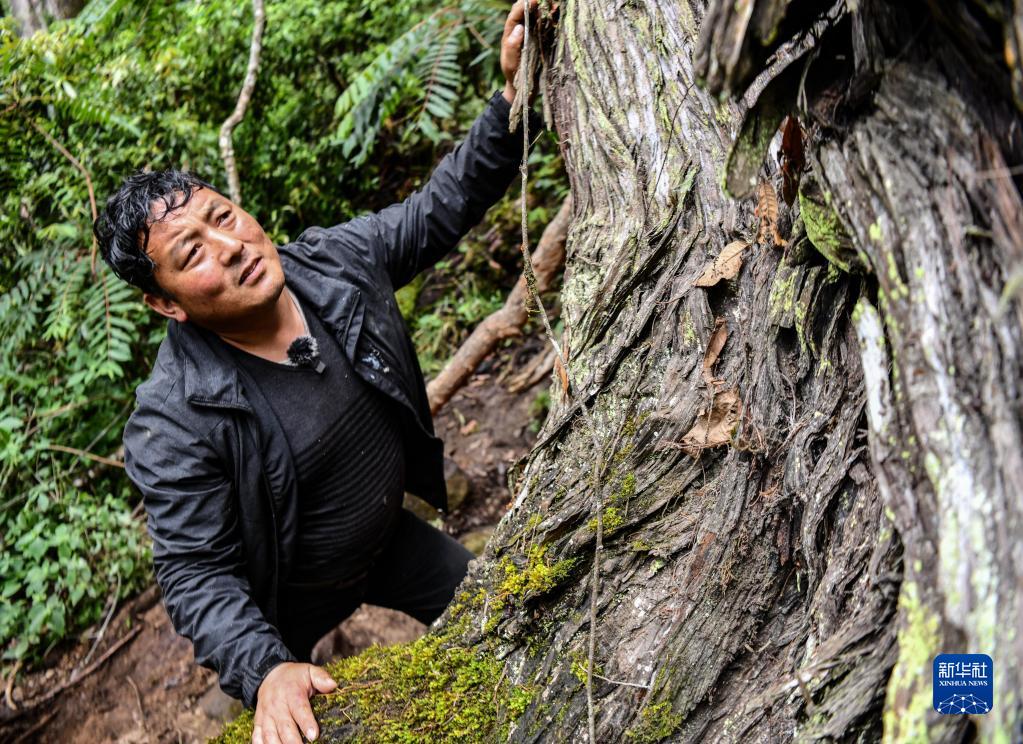 “我們這有那么多巨樹的一個(gè)原因就是生態(tài)環(huán)境保護(hù)得好,僅波密縣就有59萬公頃的森林,而且絕大部分區(qū)域人跡罕至?!辈芸h林草局副局長尼瑪次仁對(duì)記者說。