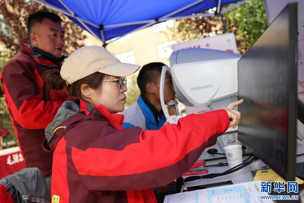 ??在西藏自治區(qū)那曲市色尼區(qū)第二中學(xué)(杭嘉中學(xué)),志愿者用綜合驗光儀為學(xué)生驗光(6月22日攝)。新華社發(fā)(趙穎碩 攝)