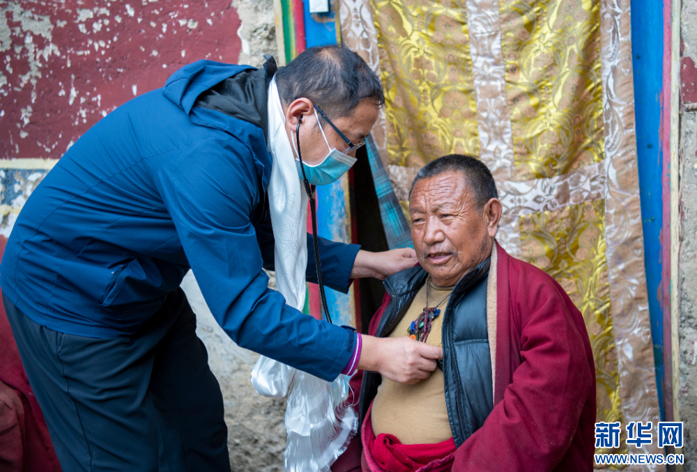 7月13日,來自北京安貞醫(yī)院的醫(yī)生在西藏丁青縣孜珠寺為僧人義診。新華網(wǎng) 旦增努布 攝