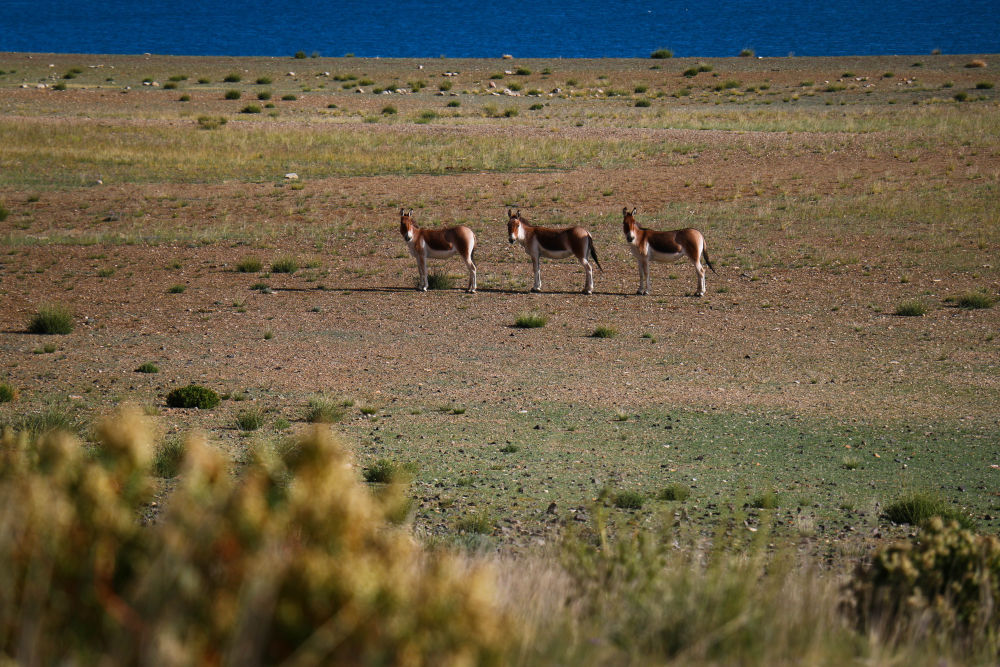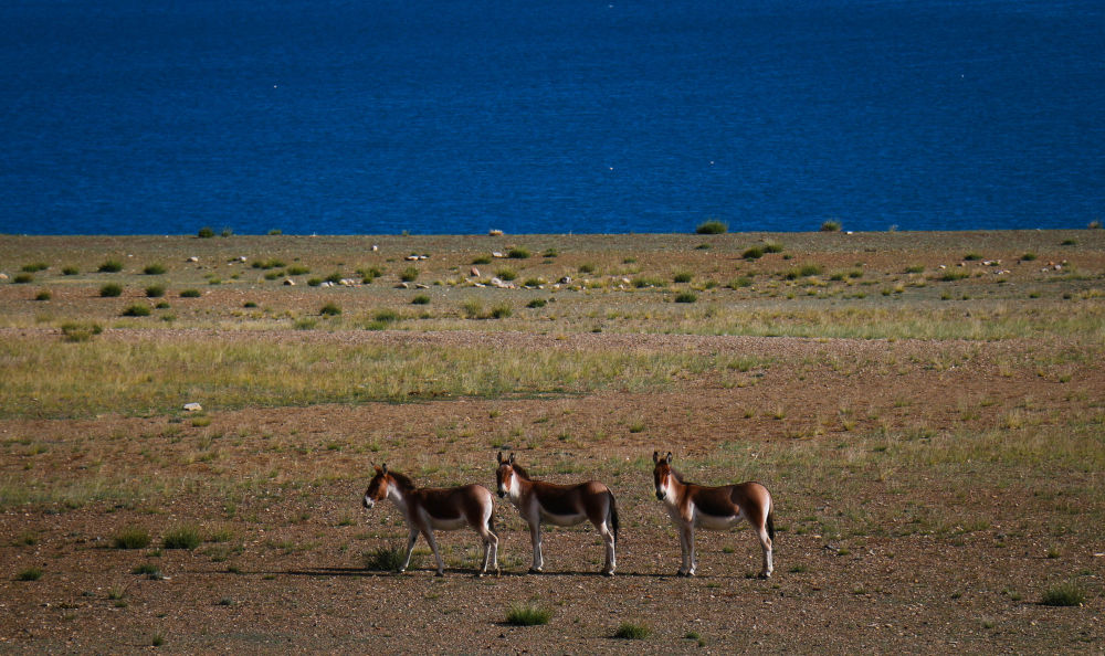 拉昂錯位于西藏阿里地區(qū)普蘭縣東北部的霍爾鄉(xiāng),湖面海拔4573米。拉昂錯與圣湖瑪旁雍錯相鄰,僅以一條公路相隔,遠(yuǎn)處岡底斯山脈的主峰岡仁波齊巍峨聳立。藏野驢是國家一級保護動物,青藏高原特有物種,近年來隨著西藏生態(tài)保護力度不斷增大,藏野驢數(shù)量由原來的5萬只左右增加至現(xiàn)在的約9萬只。