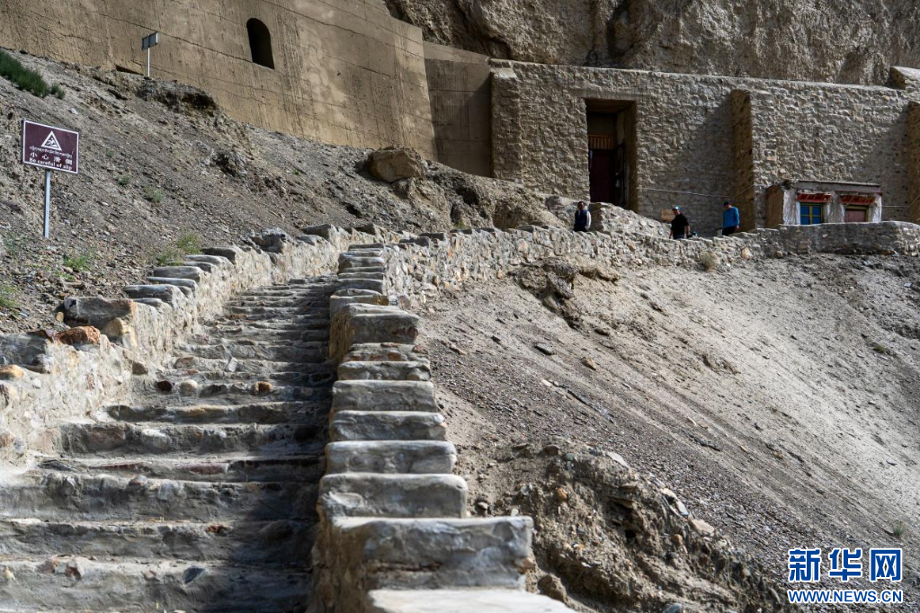 從遺址腳下一條蜿蜒的石頭路依山而建,一直延伸到洞窟門口?!斑@里以前沒有路,都是土坡。”阿旺米朗介紹,以前想要到洞窟參觀,都得手腳并用爬上去。1998年,他開始推動(dòng)修建山上的道路,號(hào)召東嘎村村民一起背著石頭上山,揮鋤挖土,用了幾年的時(shí)間才修成了如今的石頭路。