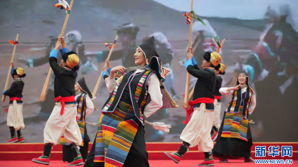 圖為隆子縣藝術(shù)團(tuán)帶來的《扎西康桑舞蹈》(8月24日攝)。新華網(wǎng) 柑丹鴦琦 攝