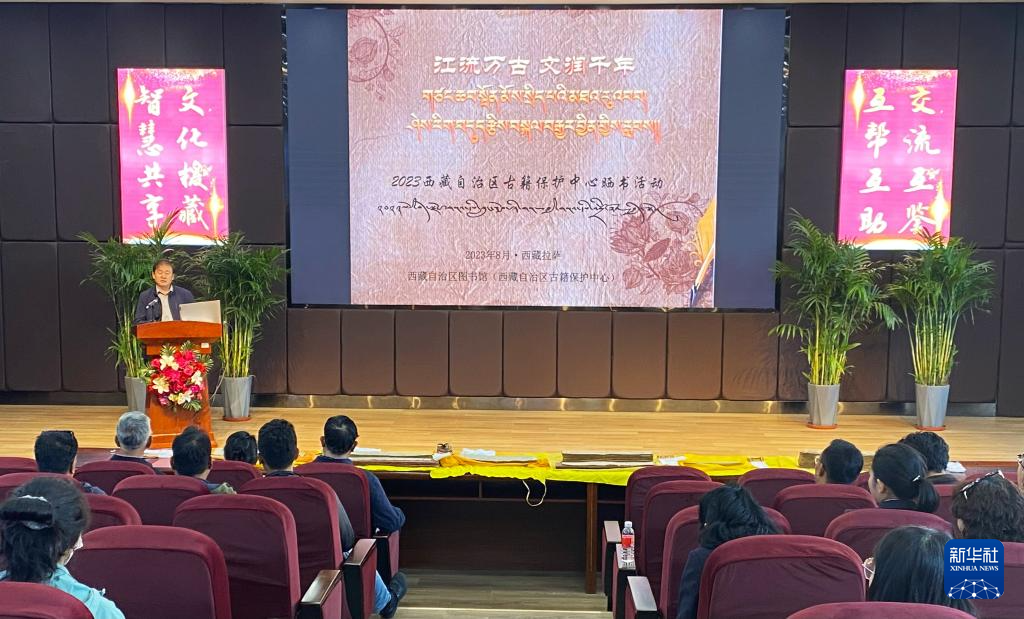 “江流萬古 文潤千年”——2023年西藏自治區(qū)古籍保護(hù)中心曬書活動現(xiàn)場。新華社記者 春拉 攝