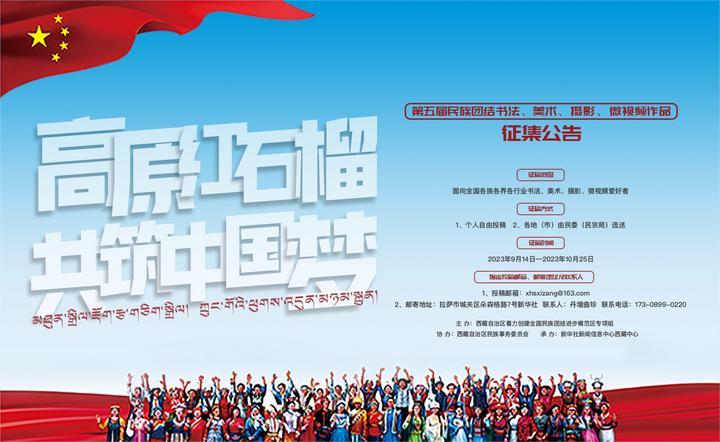 為深入學習貫徹習近平總書記關于加強和改進民族工作的重要思想,緊扣鑄牢中華民族共同體意識主線,持續(xù)深化著力創(chuàng)建全國民族團結進步模范區(qū),不斷促進各民族交往交流交融,即日起,西藏自治區(qū)著力創(chuàng)建全國民族團結進步模范區(qū)專項組辦公室決定在全國范圍開展“高原紅石榴 共筑中國夢”為主題的第五屆民族團結書法、美術、攝影、微視頻作品征集活動。現將有關事宜公告如下。