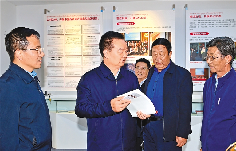 10月7日,西藏自治區(qū)黨委書記王君正前往自治區(qū)社科院、社科聯(lián)調(diào)研。這是王君正在考察全區(qū)哲學(xué)社會(huì)科學(xué)組織體系建設(shè)、學(xué)術(shù)研究、人才工作情況。記者 旦增西旦 攝