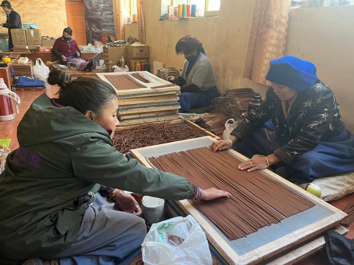 旦增曲扎的公司員工有近30人,大部分為尼木縣當(dāng)?shù)鼐用?。?jù)旦增曲扎介紹,廠子里的員工在農(nóng)忙時(shí)可以請假回家,農(nóng)閑時(shí)去廠里做香,既保證了農(nóng)業(yè)生產(chǎn),又能獲得一份穩(wěn)定的收入。