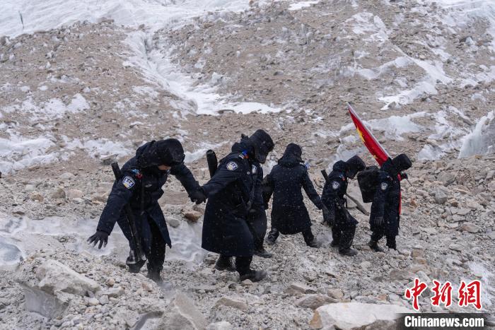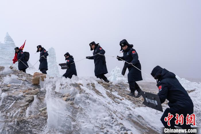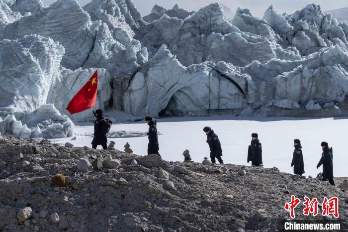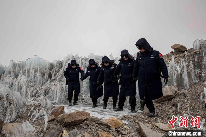近日,西藏出入境邊防檢查總站普瑪江塘邊境派出所對(duì)轄區(qū)海拔5600米的崗布冰川(中不邊境)開展第332次巡邏。