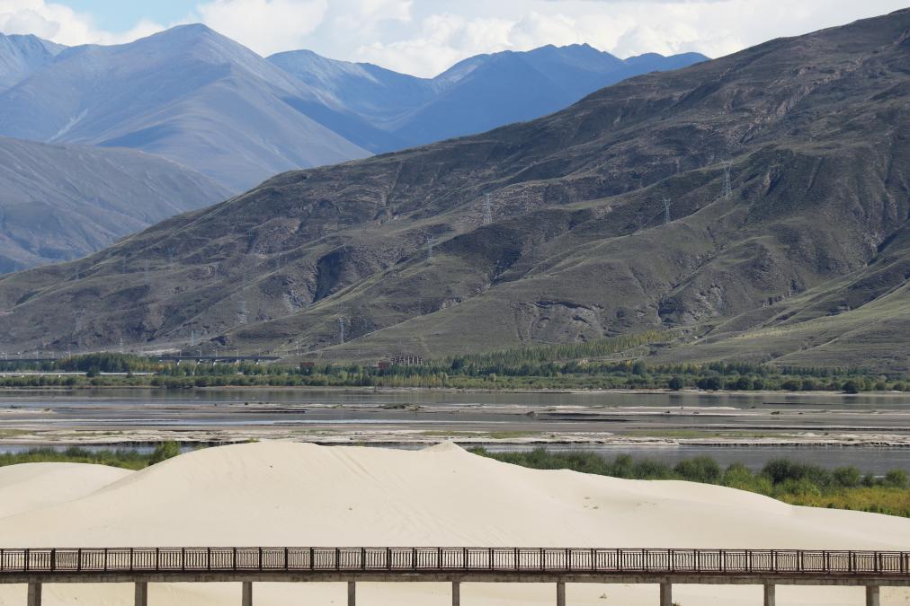 雅魯藏布江沖出中游的尼木峽谷后河道變寬、流速放緩,江水攜帶的泥沙在貢嘎、扎囊、桑日等縣沉積成沙洲。每到冬春枯水季節(jié)時,寬闊的河床裸露出來,揚起的風沙形成了一片片沙化地帶。