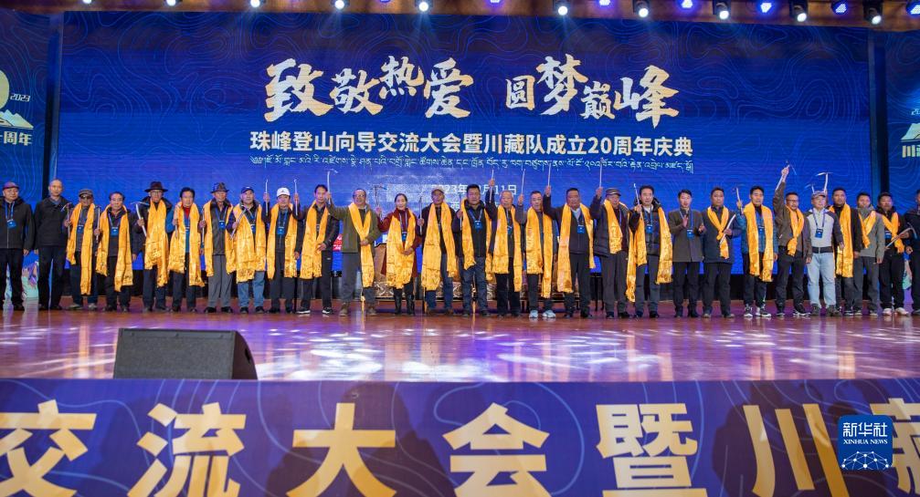 當日,以“致敬熱愛 圓夢巔峰”為主題的珠峰登山向導交流大會暨川藏高山向導協作隊成立20周年慶典在拉薩舉行。