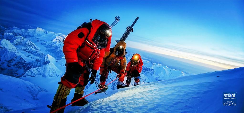 中國登山者在攀登珠峰(5月23日攝)。新華社發(fā)(川藏高山向導協作隊供圖)