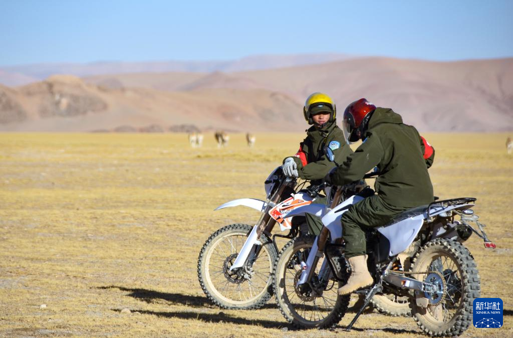 巡護(hù)隊員們騎著摩托巡護(hù)(12月17日攝)。新華社記者 劉文博 攝