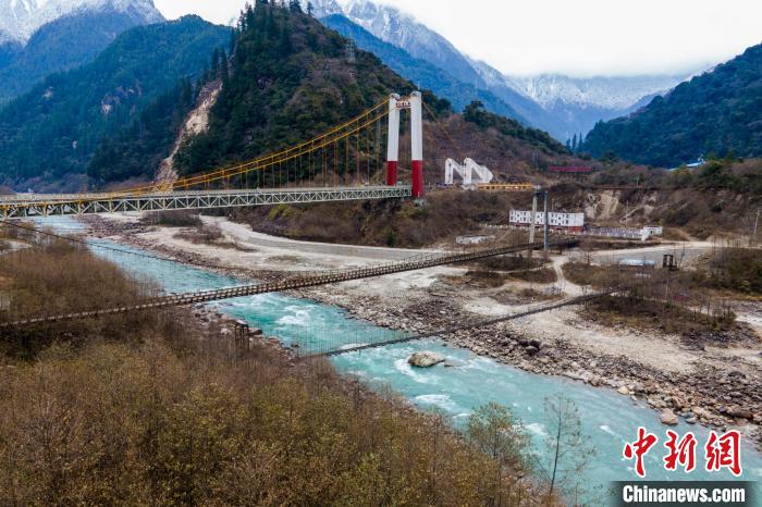 圖為西藏林芝“老中青”三代通麥大橋橫跨易貢藏布。江飛波 攝