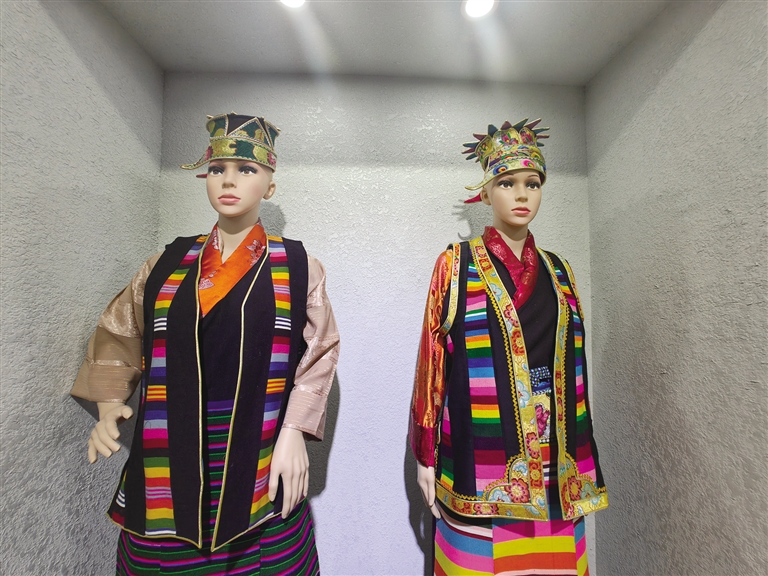 走進(jìn)山南市瓊結(jié)縣綠色產(chǎn)業(yè)園,達(dá)娃卓瑪?shù)膌ogo映入眼簾。走進(jìn)店內(nèi),精細(xì)入微的刺繡、絢麗多彩的色彩加上獨(dú)具匠心的手藝,一件件制作精美的衣物穿在模特身上。店內(nèi)的藏式擺件與文創(chuàng)產(chǎn)品整齊地擺放在桌子上?!斑@件衣服我們將現(xiàn)代服飾和傳統(tǒng)服飾的精髓融合起來,不能簡簡單單把原有的藏裝版式套進(jìn)去,我們要換位思考,想顧客所想,怎樣才能更加便捷、怎樣才能在創(chuàng)新的同時不失傳統(tǒng)?!卑⑼c工人商量著即將推出的新樣式藏裝,他是達(dá)娃卓瑪服飾第四代非遺傳承人,也是西藏達(dá)娃卓瑪實業(yè)有限公司董事長。