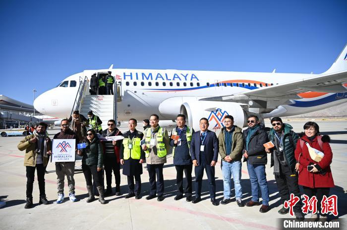 2023年12月28日,拉薩貢嘎機場國際航站樓正式投運后迎來來自加德滿都的國際客運航班。資料圖 趙朗 攝