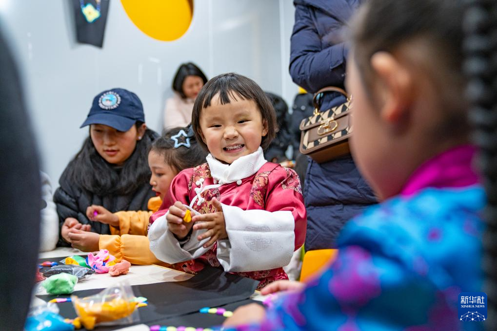 2月3日,孩子們在拉薩的兒童藏裝派對上用彩泥做手工。新華社記者 丁增尼達(dá) 攝