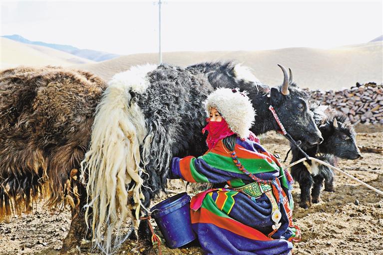 “這些都是咱們村合作社的牦牛,我們給合作社放牧、擠奶、制作酥油和奶渣,不僅有務(wù)工補(bǔ)貼,年底還能分紅。去年,我們家總收入有6.7萬元左右,日子真是越過越有盼頭了?!倍静輬?chǎng)上,正在放牧的牧民桑嘎卓瑪高興地說。