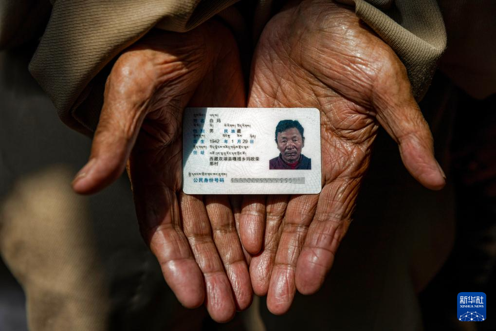 白瑪老人展示自己的身份證(3月27日攝)。新華社記者 姜帆 攝
