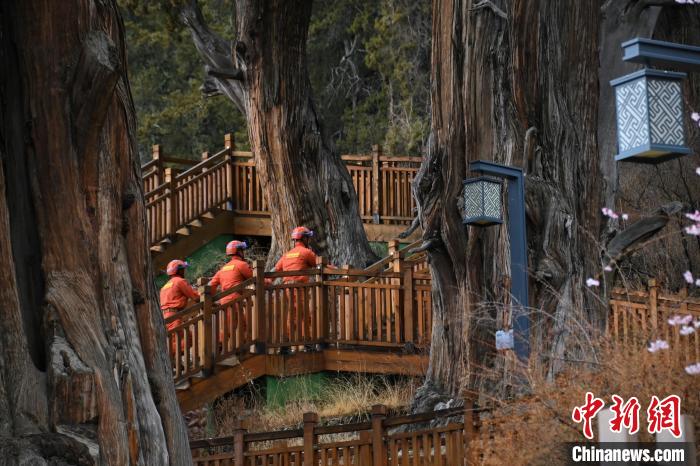 圖為消防員在景區(qū)巡護。西繞拉翁 攝