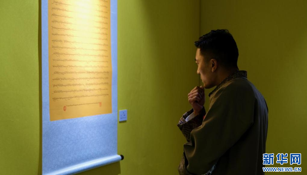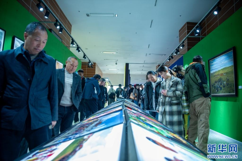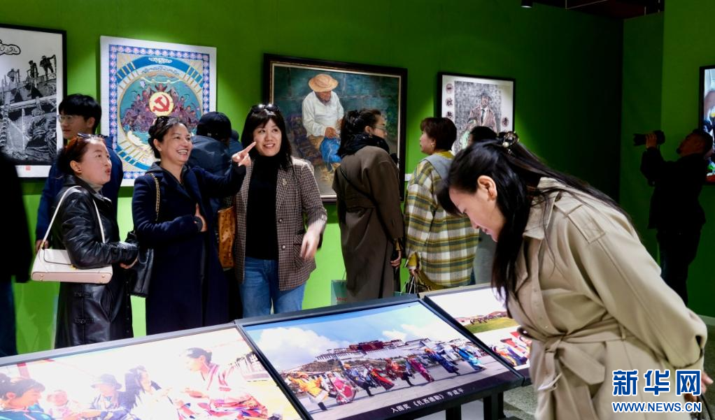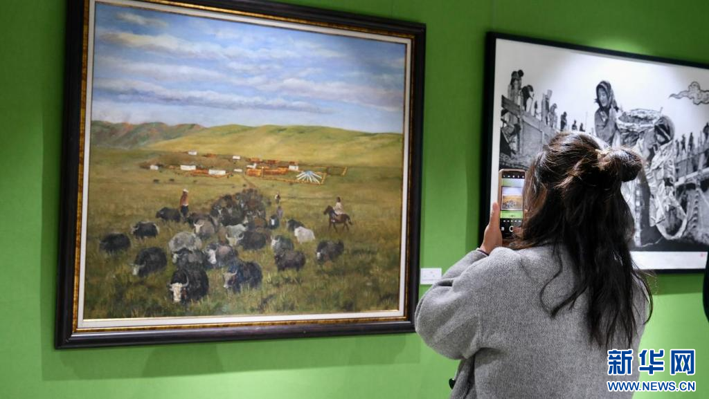 4月28日,第五屆民族團(tuán)結(jié)書(shū)法、美術(shù)、攝影、微視頻大賽作品展現(xiàn)場(chǎng)。新華網(wǎng) 旦增努布 攝