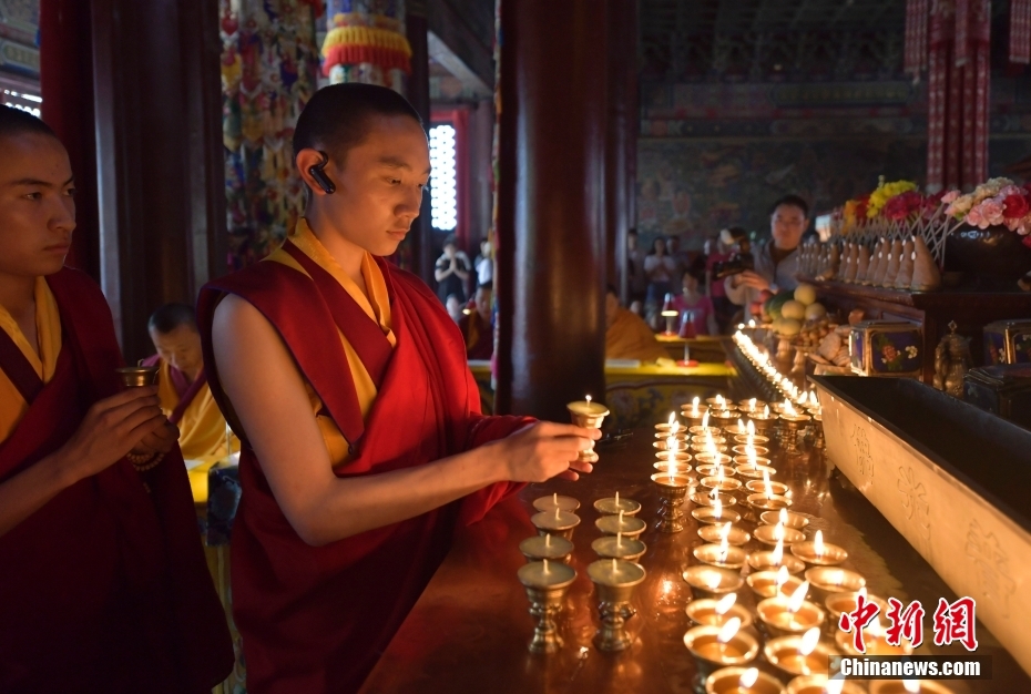 5月19日至23日,西藏少年活佛參學(xué)團(tuán)來到北京參觀學(xué)習(xí),在清代藏傳佛教皇家寺院知古鑒今。圖為5月22日,西藏少年活佛參學(xué)團(tuán)到北京雍和宮參訪。