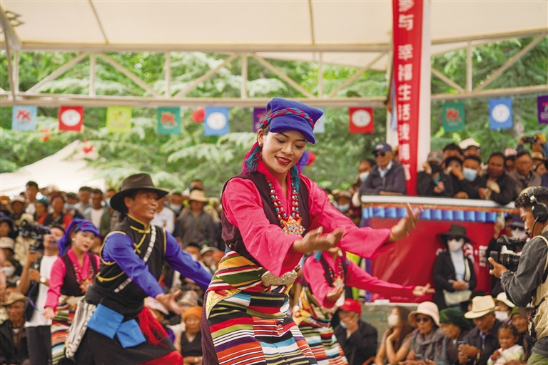 從傳統(tǒng)民族舞到現代創(chuàng)新舞,每支舞蹈都蘊含著藏族人民對家鄉(xiāng)的熱愛和對美好生活的向往。比賽中,參賽人員身著特色民族服飾,伴隨著優(yōu)美激昂的旋律,踩著歡快的節(jié)拍,以飽滿的熱情和精湛的舞技,演繹了一場精彩而富有特色地域文化的廣場舞盛宴,凸顯了非物質文化遺產的傳承創(chuàng)新發(fā)展。