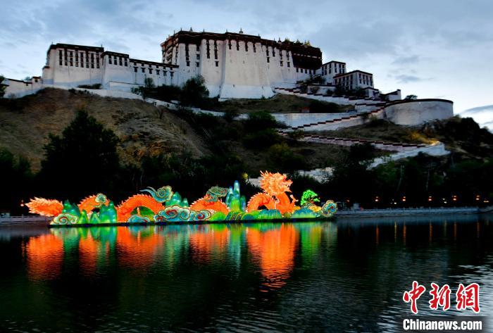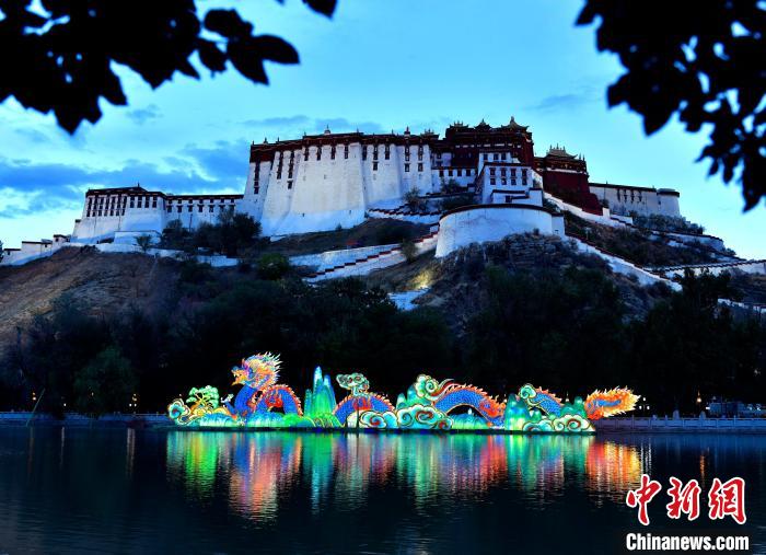 7月1日晚,布達(dá)拉宮腳下的宗角祿康公園“點(diǎn)亮拉薩—秦淮燈會(huì)”亮燈。燈會(huì)設(shè)17個(gè)點(diǎn)位、50個(gè)燈組,將持續(xù)至9月30日。圖為宗角祿康公園里的龍燈。中新社記者 李林 攝