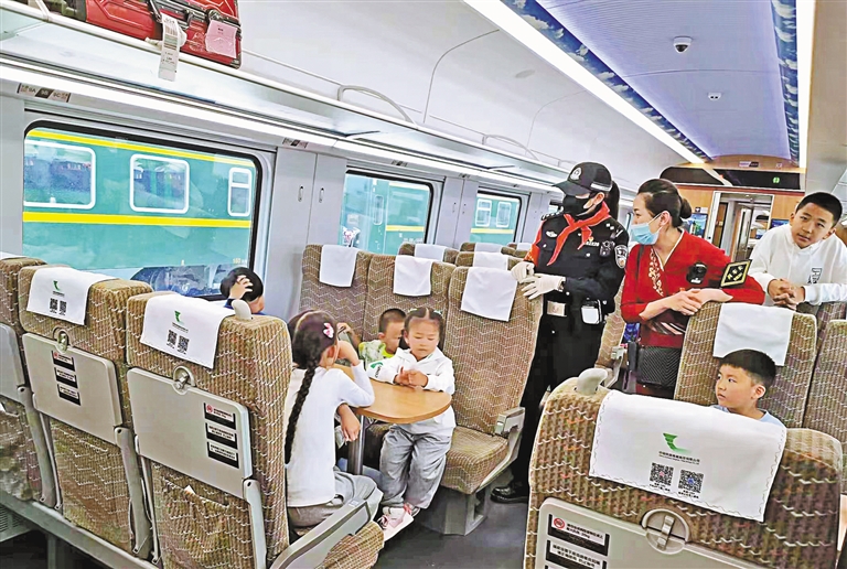列車(chē)乘務(wù)員積極服務(wù)重點(diǎn)旅客。記者 王莉 攝