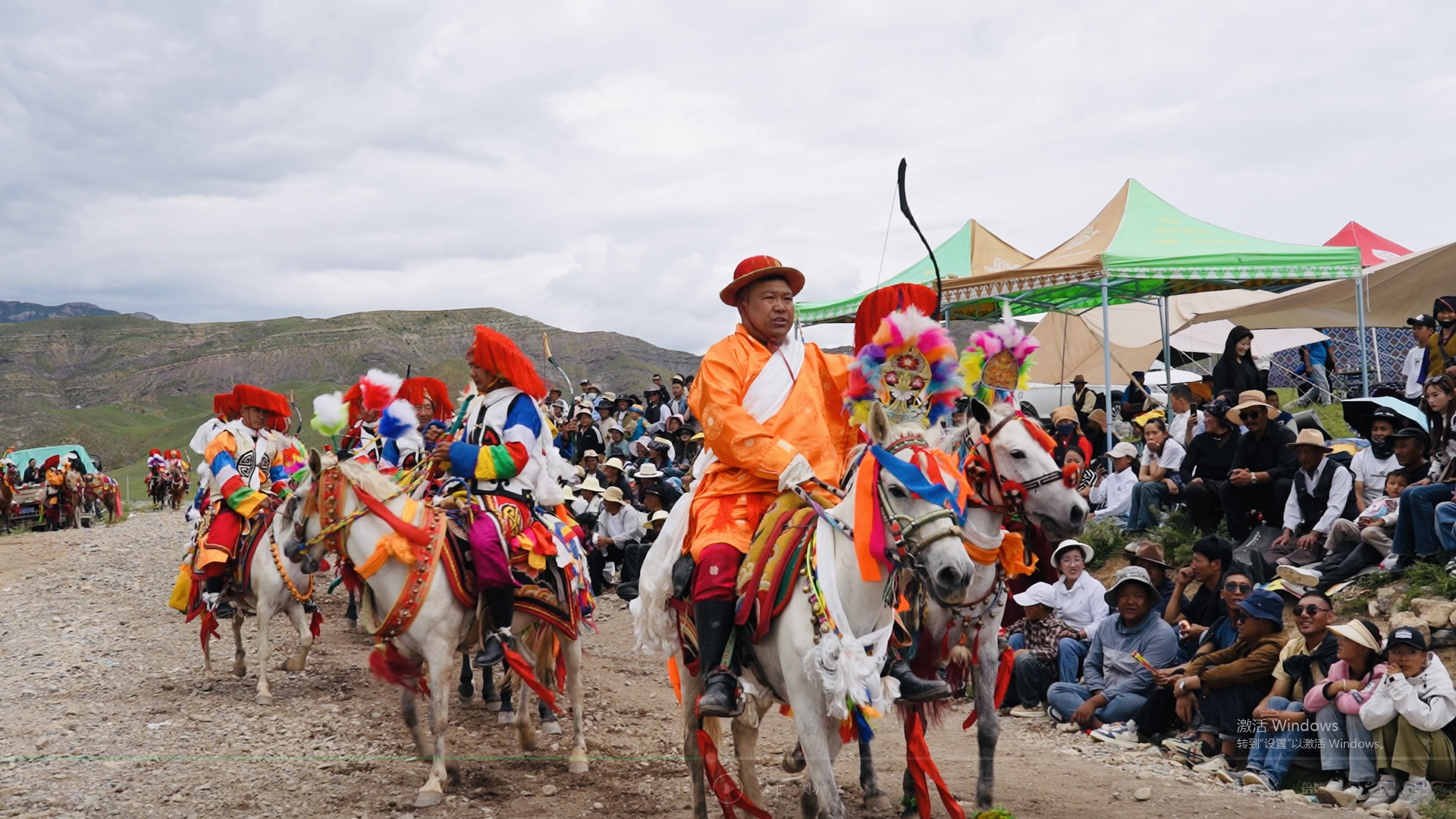 在林周縣邊交林鄉(xiāng)當(dāng)杰村“望果節(jié)”活動(dòng)現(xiàn)場(chǎng),隨著激昂的《運(yùn)動(dòng)員進(jìn)行曲》,當(dāng)杰村“平措林望果節(jié)”活動(dòng)拉開帷幕,38名馬術(shù)運(yùn)動(dòng)員、38名射箭運(yùn)動(dòng)員在2萬(wàn)多名觀眾的歡呼聲中邁入現(xiàn)場(chǎng)。圖為賽馬選手參加射箭比賽。