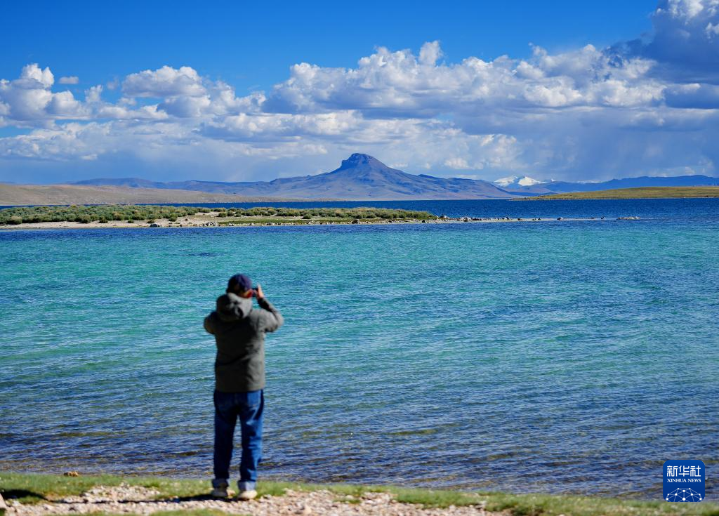 游客在錯鄂湖畔拍照(8月25日攝)。新華社記者 張汝鋒 攝