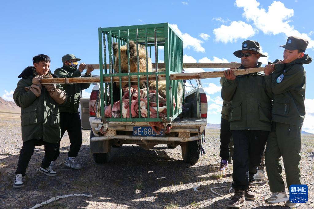 野保隊員將棕熊運送至西藏那曲市尼瑪縣的羌塘國家級自然保護(hù)區(qū)核心區(qū)(8月30日攝)。新華社記者 姜帆 攝
