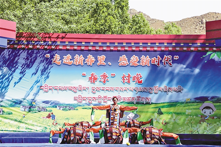 日喀則市定結(jié)縣藝術(shù)團與山南市洛扎縣藝術(shù)團在曲水縣南木村演出。通訊員 晉美頓旦 記者 王超 攝