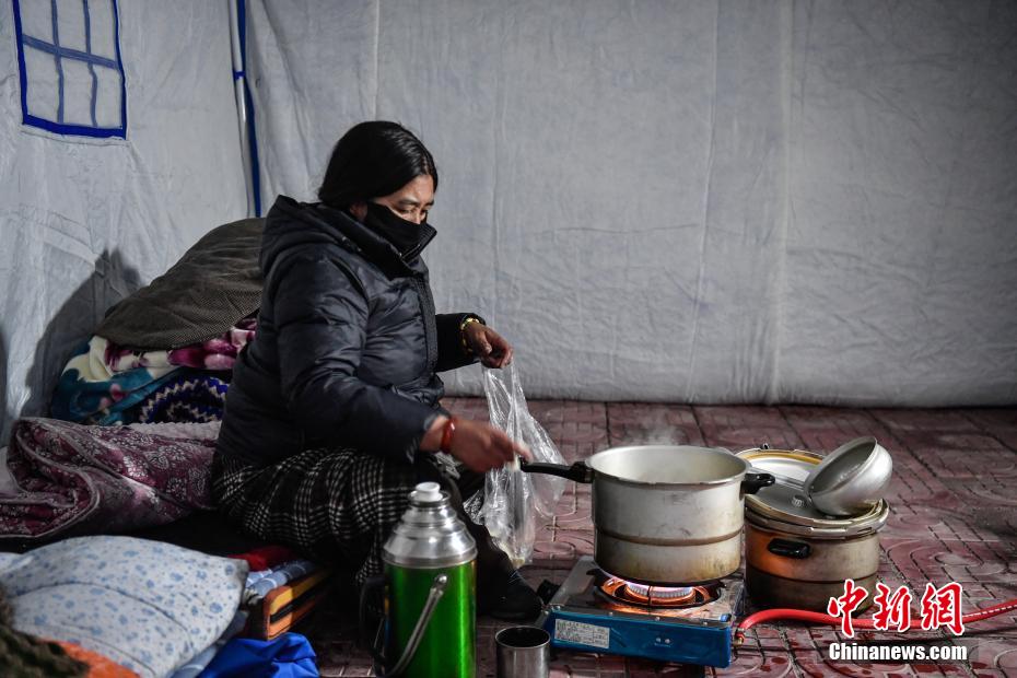 1月7日9時(shí)5分,西藏自治區(qū)日喀則市定日縣措果鄉(xiāng)附近(東經(jīng)87.45度,北緯28.50度)發(fā)生6.8級(jí)地震。日喀則市官方介紹,經(jīng)初步排查,截至當(dāng)日15時(shí),地震共造成95人遇難,130人受傷,房屋損毀正在統(tǒng)計(jì)中。圖為日喀則拉孜縣境內(nèi)的村民在臨時(shí)搭建的帳篷里做飯。中新社記者 貢嘎來(lái)松 攝