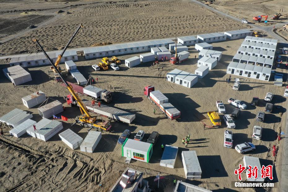 1月7日9時(shí)5分,西藏自治區(qū)日喀則市定日縣發(fā)生6.8級(jí)地震,震源深度10公里。災(zāi)情就是命令,當(dāng)?shù)卣推髽I(yè)迅速行動(dòng),目前災(zāi)區(qū)多個(gè)鄉(xiāng)村都在加緊進(jìn)行保溫板房建設(shè),只為讓受災(zāi)民眾早日擁有“安心巢”。據(jù)了解,每間板房有18平方米,可容納4到5人,板房設(shè)有折疊床、桌子、爐子等,并保障民眾用電需求,讓他們更好地度過冬天。圖為1月11日,西藏日喀則市定日縣長所鄉(xiāng)嘎旦村保溫板房建設(shè)現(xiàn)場。(無人機(jī)照片)中新社記者 貢嘎來松 攝