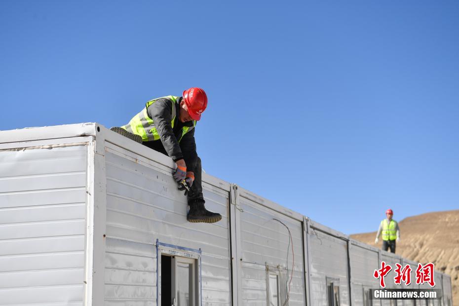 1月7日9時(shí)5分,西藏自治區(qū)日喀則市定日縣發(fā)生6.8級(jí)地震,震源深度10公里。災(zāi)情就是命令,當(dāng)?shù)卣推髽I(yè)迅速行動(dòng),目前災(zāi)區(qū)多個(gè)鄉(xiāng)村都在加緊進(jìn)行保溫板房建設(shè),只為讓受災(zāi)民眾早日擁有“安心巢”。據(jù)了解,每間板房有18平方米,可容納4到5人,板房設(shè)有折疊床、桌子、爐子等,并保障民眾用電需求,讓他們更好地度過冬天。圖為1月9日,西藏日喀則市定日縣曲洛鄉(xiāng)措昂村安置點(diǎn),中國交建西藏指揮部抗震救災(zāi)前線工人在搭建保溫板房。中新社記者 貢嘎來松 攝