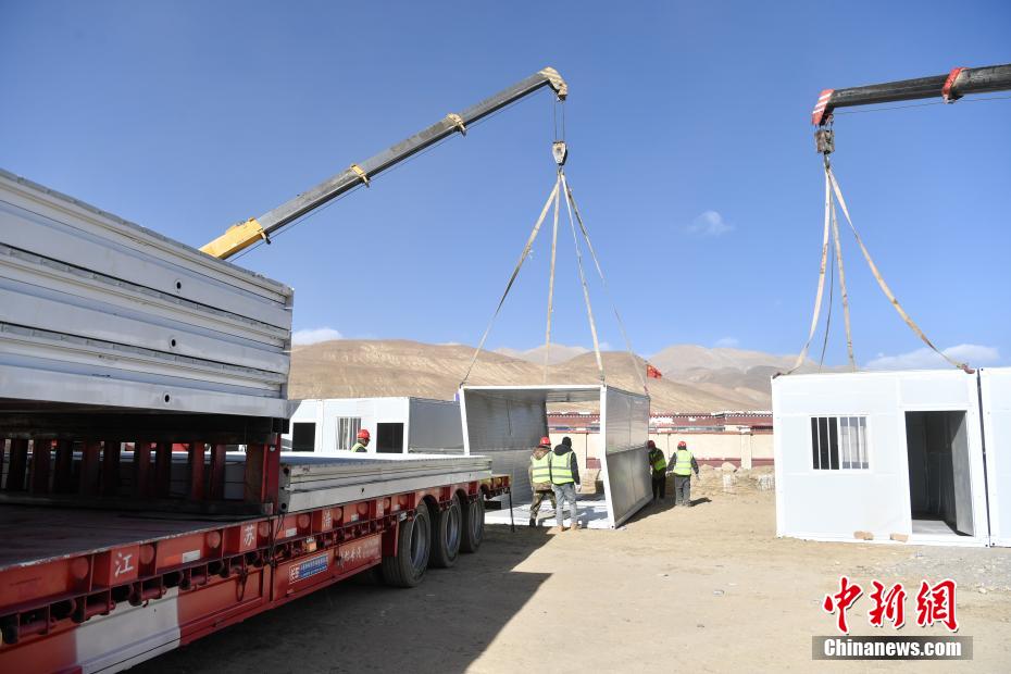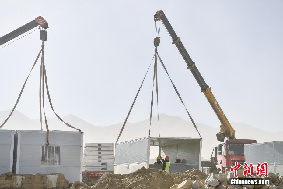 1月7日9時(shí)5分,西藏自治區(qū)日喀則市定日縣發(fā)生6.8級(jí)地震,震源深度10公里。災(zāi)情就是命令,當(dāng)?shù)卣推髽I(yè)迅速行動(dòng),目前災(zāi)區(qū)多個(gè)鄉(xiāng)村都在加緊進(jìn)行保溫板房建設(shè),只為讓受災(zāi)民眾早日擁有“安心巢”。據(jù)了解,每間板房有18平方米,可容納4到5人,板房設(shè)有折疊床、桌子、爐子等,并保障民眾用電需求,讓他們更好地度過冬天。圖為1月10日,西藏日喀則市定日縣長所鄉(xiāng)森嘎村保溫板房建設(shè)現(xiàn)場。中新社記者 貢嘎來松 攝