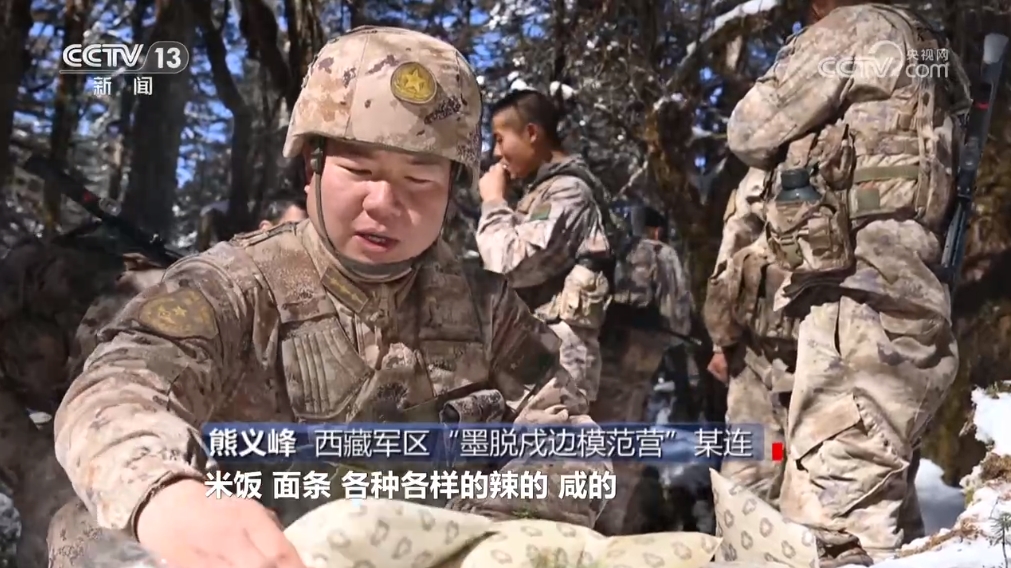 西藏軍區(qū)“墨脫戍邊模范營”某連熊義峰:“我們現在單兵自熱食品品種非常豐富,米飯、面條,各種各樣的,辣的、咸的,能夠滿足廣大官兵的口味需求。然后它的操作也非常簡單,就是加點水,操作非常便捷,熟得也很快,第三個,它這個熱量提供非常充足。因為我們在巡邏路上要經常爬山,體力消耗很大,所以需要快速補充能量?!?/p>