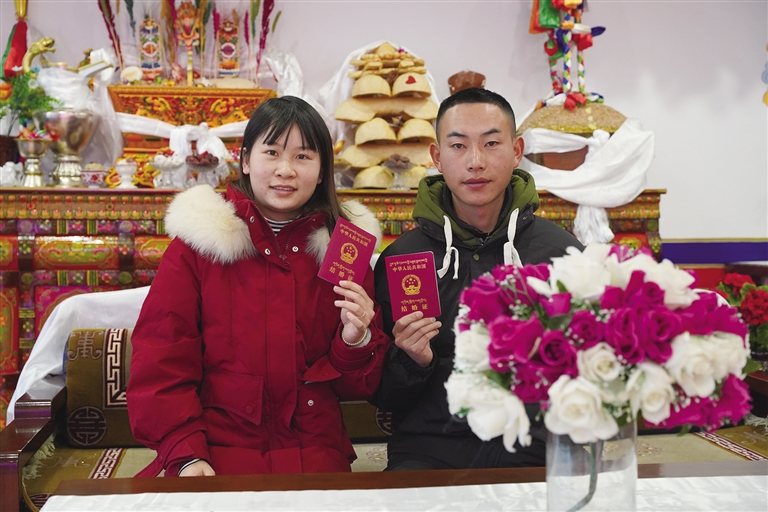 2月14日,這個(gè)源自西方的傳統(tǒng)情人節(jié),因“愛(ài)你一世”“愛(ài)一世”的美好諧音,在拉薩成為眾多年輕人眼中的結(jié)婚良辰吉日。不少情侶紛紛選擇在這一天喜結(jié)連理,領(lǐng)取結(jié)婚證,共同開(kāi)啟人生新的旅程。