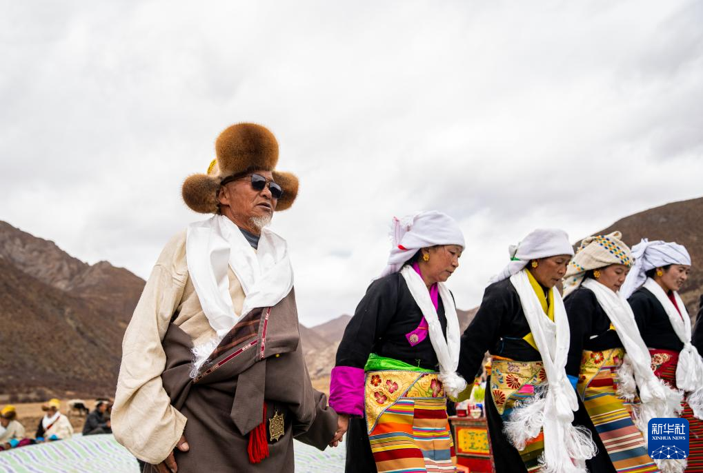 旺慶老人(左)在春耕大典上唱頌詞(3月16日攝)。新華社記者 丁增尼達(dá) 攝