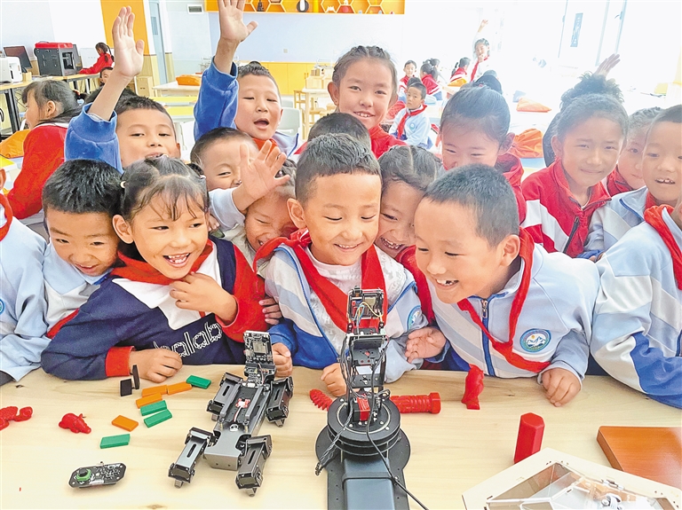 在桑珠孜區(qū)青島小學(xué)的科學(xué)課堂上,智能實(shí)驗(yàn)臺(tái)前圍滿了興致勃勃的孩子,他們手持 3D 打印筆,精心繪制著心中的“太空基地”。作為西藏首個(gè)啟動(dòng)“ STEM ”科學(xué)課程的地區(qū),這里不僅建成了全區(qū)首個(gè)小學(xué)科創(chuàng)實(shí)驗(yàn)室,還被教育部認(rèn)定為西藏唯一的全國(guó)“白名單”科創(chuàng)賽事基層組織單位?!耙郧?,孩子們只能從課本上了解實(shí)驗(yàn),現(xiàn)在能親手操作機(jī)器人、設(shè)計(jì)航天模型。”青島小學(xué)黨支部書(shū)記周杰介紹道??苿?chuàng)課程的開(kāi)展,如同一把鑰匙,打開(kāi)了孩子們創(chuàng)新思維和科學(xué)探索的大門(mén),為高原青少年搭建起展示科學(xué)素養(yǎng)與創(chuàng)新能力的舞臺(tái),推動(dòng)當(dāng)?shù)亟逃聵I(yè)邁向新高度。