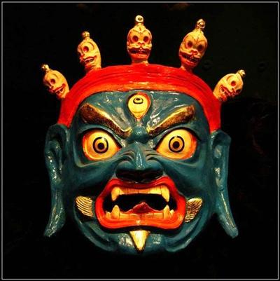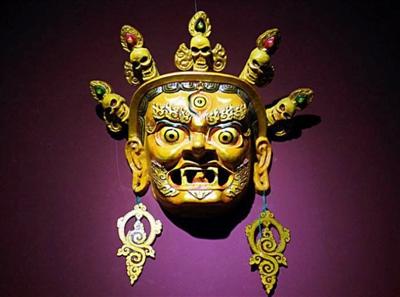 面具,藏語中稱“巴”,主要用于各種民間表演活動,它與人們日常生活、勞動、娛樂有著直接的關系,遍及全區(qū)各地。西藏面具大致分為差姆(跳神)面具、藏戲面具、懸掛面具三類。面具的制作材料有金質、皮質、祭品、木質、紙質、泥質、貼布脫胎等。由于地域的差異、用途的不同,西藏面具呈現(xiàn)出多姿多彩、對比強烈、形式各異的特點。