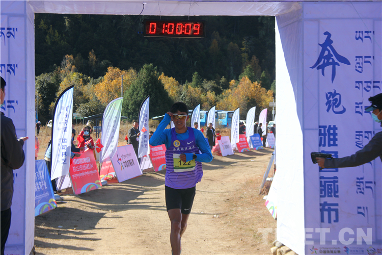 在雪山的映襯下,參賽選手們身穿各色服裝,伴隨著周邊村民的加油助威,一路抵達(dá)終點(diǎn)。最終,來自西藏自治區(qū)山南市的扎巴以59分02秒的成績獲得男子組第一名,邊片以1小時16分12秒的成績奪得女子組第一名。