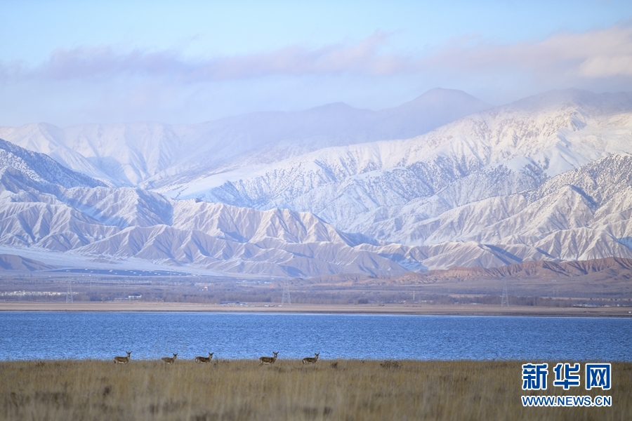 五只鵝喉羚在都蘭湖國家濕地公園內(nèi)活動(dòng)。(11月21日攝)新華網(wǎng) 潘彬彬攝