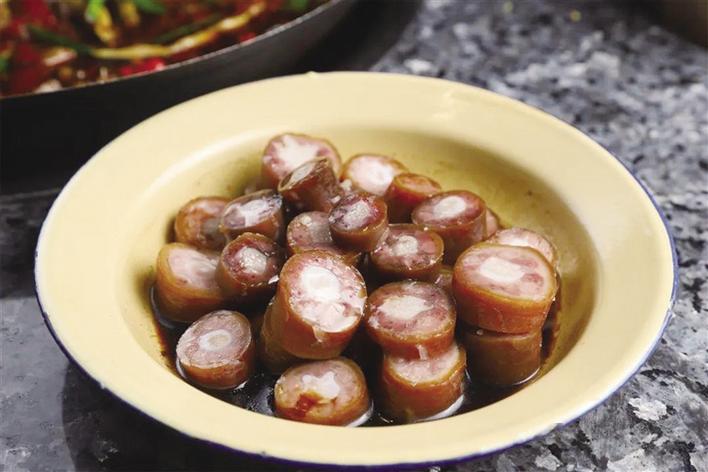 12月9日晚,記者和品鑒團成員們來到外婆怪味雞餐廳。走進店內(nèi),一股懷舊風(fēng)撲面而來——擺滿食材的木架、古式的燈罩、茅草屋、實木桌椅,讓人仿佛置身于農(nóng)家小院。該餐廳就餐區(qū)分為一樓大廳食材展示區(qū)、二樓大廳用餐區(qū)以及包間區(qū),每層樓都各有特色,環(huán)境十分雅致。“非常喜歡這家店的裝修風(fēng)格,店里布置的實木亭、老式電視、音箱以及那些高高掛起的腌臘肉都讓我感覺非常親切,也讓我想起了小時候在四川老家生活的時光。”品鑒團成員李女士說。